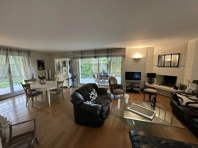 Appartement de 6 pièces en rez-de-chaussée de 136 m2 donnant sur jardin et terrasse d'environ 400 m2 entièrement clos avec une cave, 1 box simple et 1 box double.