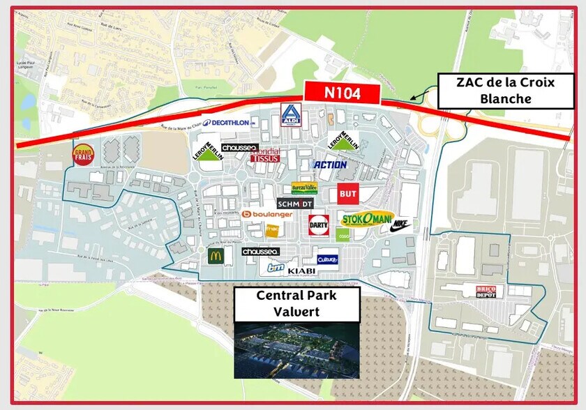 Local Commercial 4 000m² divisible sur La Croix Blanche. Idéalement situé sur la zone commerciale de Sainte-Geneviève-des-Bois. Environnement commerciale composé d'enseignes nationales.