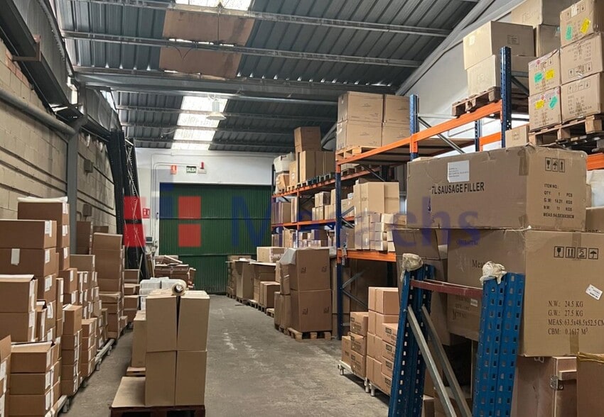 The warehouse has a total area of 1,035 m2, distributed as follows: 800 m2 on the ground floor and the rest on the first floor used as an office (60 m2), 38.52 m2 for dining room and 136 m2 on the mezzanine, also equipped for offices.