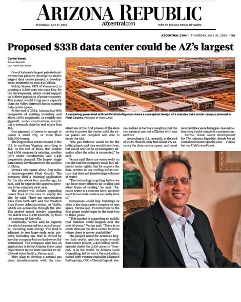 Gas Power Plant Site 243 Acres next to Data Center Development. Zoning expected to approved in June/July 2026. Large Load Study for WAPA lines is completed. Potentail to connect with APS as an alternative as area is in an unassigned service territory