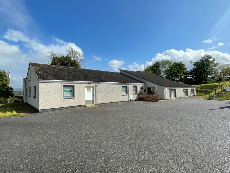 The garage benefits from double timber vehicle access doors. The property occupies a substantial site extending to approximately 0.77 acres. The building is positioned toward the south-eastern corner of the site, with access from Scorguie Place leading to a tarmacadam surfaced car park situated to the north of the building. The surrounding grounds include sloping grass embankments around the perimeter and a larger, elevated grassed area to the southwest, offering potential for further development or amenity use (subject to consents).