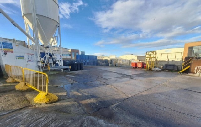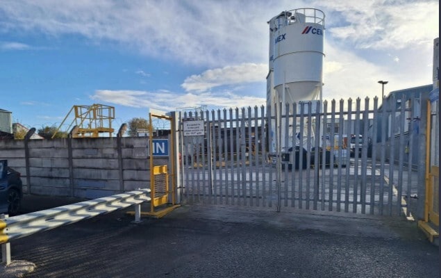 The site comprises a Ready Mix concrete batching plant on a rectangular plot surfaced in concrete and securely fenced with two access gates.