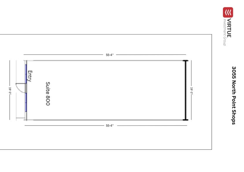 Suite 900 offers 1,680 SF of open-plan retail/service space with a modern industrial aesthetic, tall, exposed ceilings, and a large front window line providing excellent natural light. The layout supports flexible configurations for medical/therapy practices, fitness and wellness studios, boutique retail, education, or creative commercial concepts. The suite includes access to ADA-compliant restrooms and shared common areas, with strong visibility facing the front parking lot. Tenants may also expand by combining Suite 900 with Suite 700 & 800 or by leasing the full 5500 SFT (Approx) contiguous block.