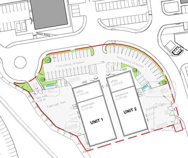 1.25 acres. Planning permission for the Erection of 2 No. Offices and Warehouses with Associated Car Parking