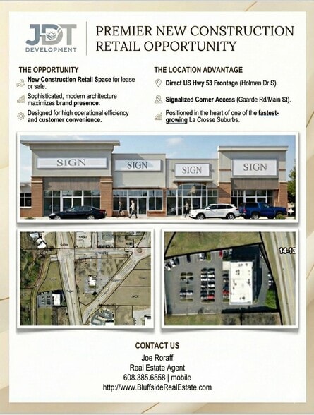 1.2 Acres yet to be developed. 6,000 square foot building total. 4,000 total square feet available for lease. Can be divided. Up to 4,000 sq ft of premier commercial space available in Holmen. Located next to McDonald's with direct US Hwy 53 (Holmen Dr S) frontage and signalized corner access at Gaarder Rd/Main Street. Positioned in the heart of one of La Crosse's fastest-growing suburbs, this new-construction property features modern architecture designed for operational efficiency, strong visibility, and customer convenience. Retail space available for lease or sale, with a new parking lot to be built.