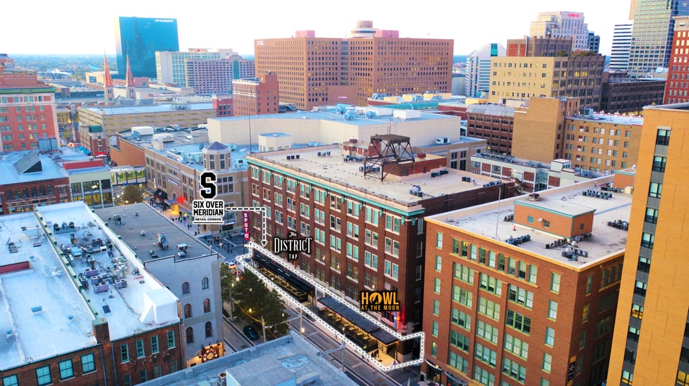 Six Over Meridian Retail Condos are 100% leased and comprised of 13,110-square feet located on the ground-floor of Six Over Meridian, a downtown six-story, mixed-use condominium tower. The ground floor retail condos, the subject offering, are leased entirely to The District Tap and Howl at the Moon. The 2nd and 3rd floors are leased by Spot; a third-party logistics provider and the remaining three floors are residential condominiums. Howl at the Moon has occupied the property for more than 20+ years and currently has 8+ years remaining on the firm term of their lease with annual rental increases. The District Tap completed an entire renovation of their suite in 2019 prior to expanding their business concept into downtown Indianapolis and recently extended their lease for an additional 10 years.