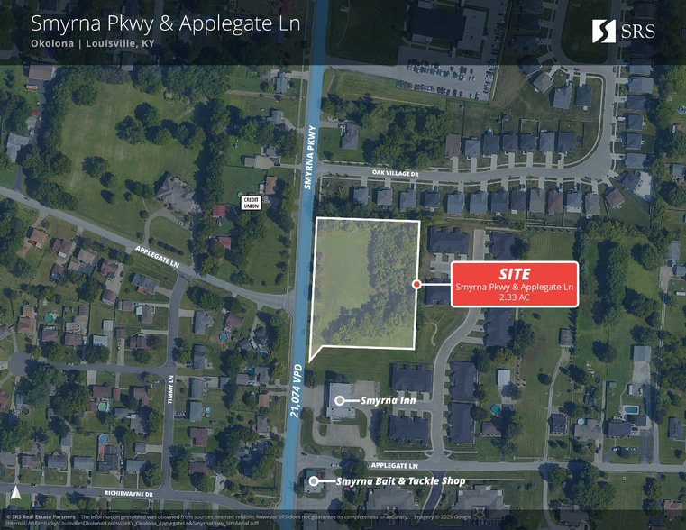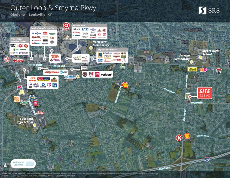 • 2.33 AC at the intersection of Smyrna Parkway & Applegate Lane • Signalized corner with excellent visibility and access • Just minutes from I-265 and I-65 • Surrounded by dense residential neighborhoods and steady daily traffic