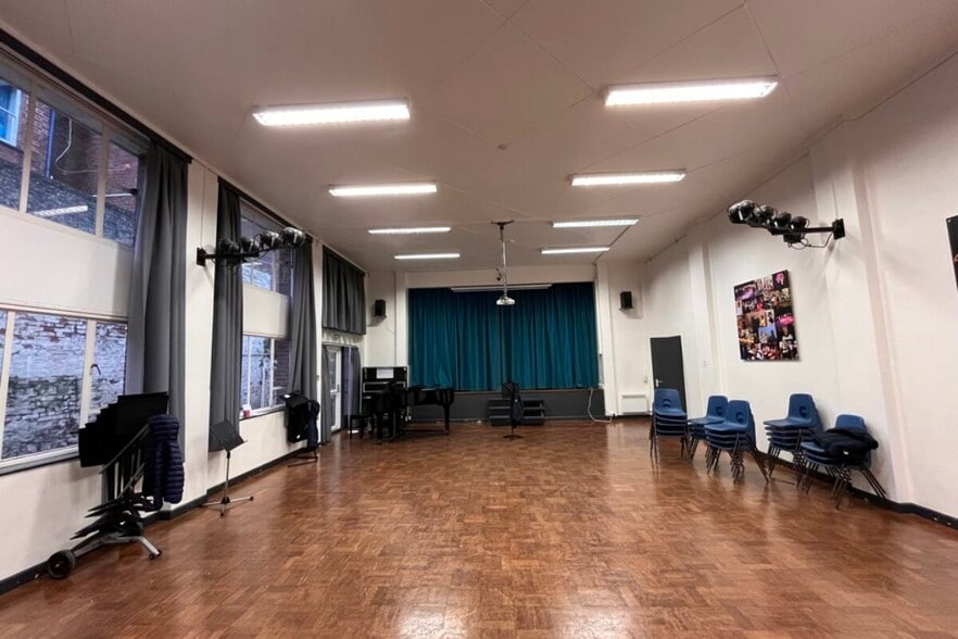 The first floor comprises an open plan music classroom, a further two music rooms and toilet facilities all accessed off the landing.