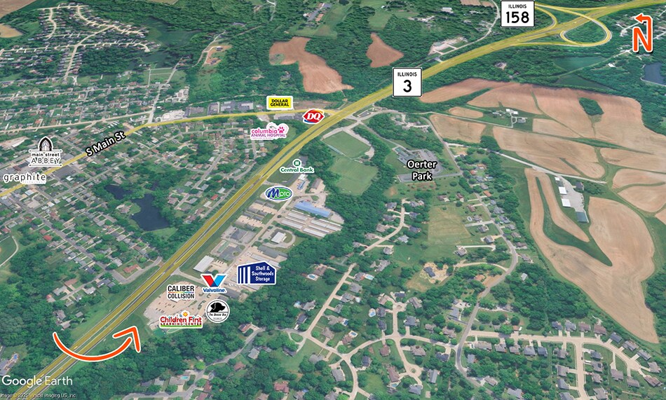 Development Site One of the few available sites with C3 zoning along Rte 3 in Columbia. Additional adjacent ground is available. Concept Plans and surveys are available. Located in Southwoods Center near the intersection of IL Route 3 and South Main St. High visibility site with 24,200 ADT along IL Route 3.
