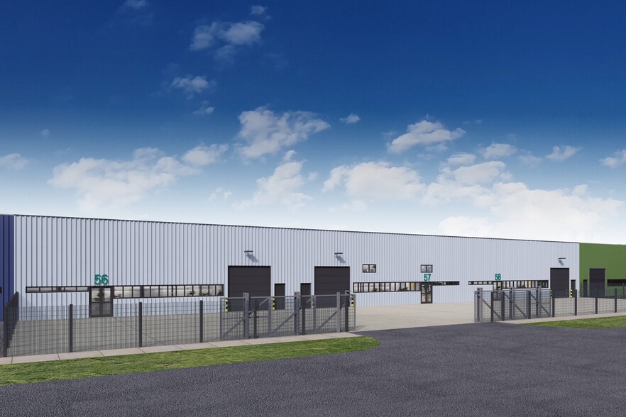 Unit 56-58 provides a terraced industrial unit/warehouse unit of brickwork/metal profile sheet elevations, under a pitched roof. These units benefit from roller shutter doors with separate personnel access. The units also benefit from loading and parking spaces to the front. Up to three additional car parking spaces could be demised to the tenant in the car park adjacent to the court of units. Internally, the unit offers an open plan warehouse area with a ground floor office, WC facilities.