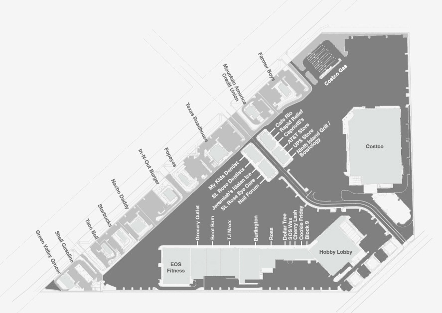 St. Rose Square shopping center is home to 35 specialty stores and eating establishments. It serves as a shopping and dining hub for the growing number of households in the Southeast side of Las Vegas. St Rose Square is a 465,000 square foot power center on 55 net acres. Abundant opportunities for retail. strong trade area well placed between Anthem and Southern Highlands.