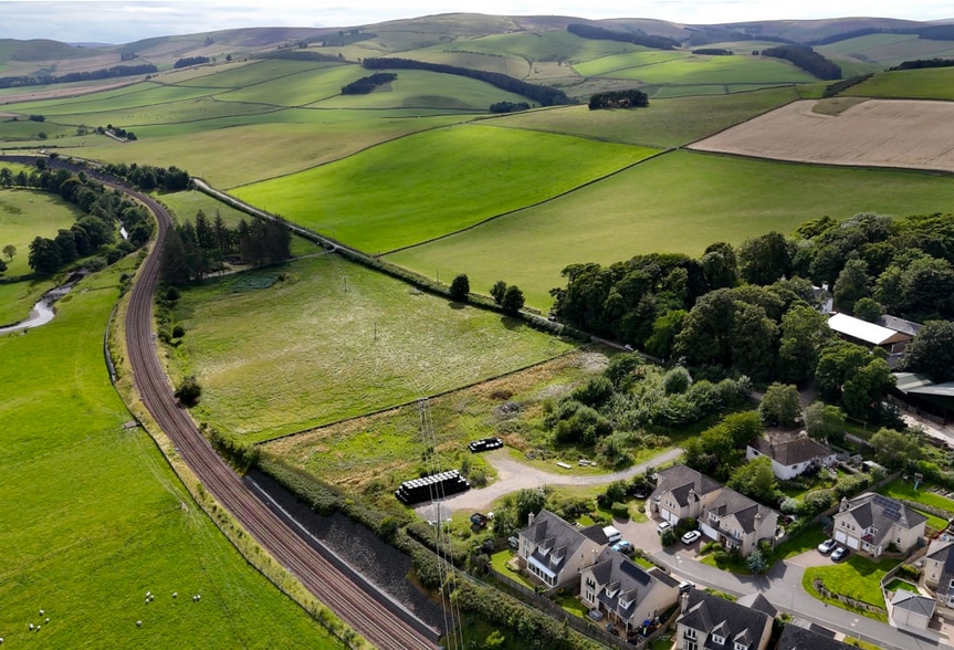 The site is located immediately to the south of Wedale View and enjoys views over the surrounding countryside. The subject site is located to the west of the Borders Railway Line, to the east of a minor public road and are bounded to the south by a stone wall. The land slopes downhill from west to east and sits in an elevated position above the railway line. Access to the development site will be from Wedale View and all necessary rights of access had been retained by the seller to access to the site from the road end at Wedale View. The site is generally square in shape and extends to approximately 2.41 acres (0.97 acres).