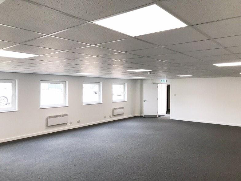 A mid terrace warehouse unit. The unit benefits from 6.4m eaves height, one loading door, three phase power, two storey offices and LED lighting throughout. The generous forecourt area provides parking for approx. 16 cars and is capable of being enclosed. The unit is available on a new lease. The Rateable Value is £71,500 (2023 Rating List)