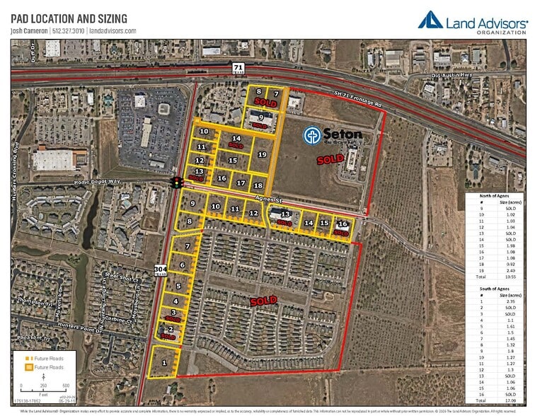 The Property occupies a strategically dominant location at the southeastern corner of the intersection of US Highway 71 and FM 304 on the commercial, west side of the City of Bastrop. The surrounding area consists of dense commercial and residential development on both sides of US Highway 71. The extension of Agnes Road to the south of the 18.31 acre parcel will connect the property to existing neighborhoods and commercial development across FM 304 to the west.