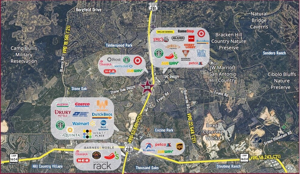 Located just west of US-281 on Stone Oak Parkway, this site offers prime frontage and access in a high demand commercial corridor.