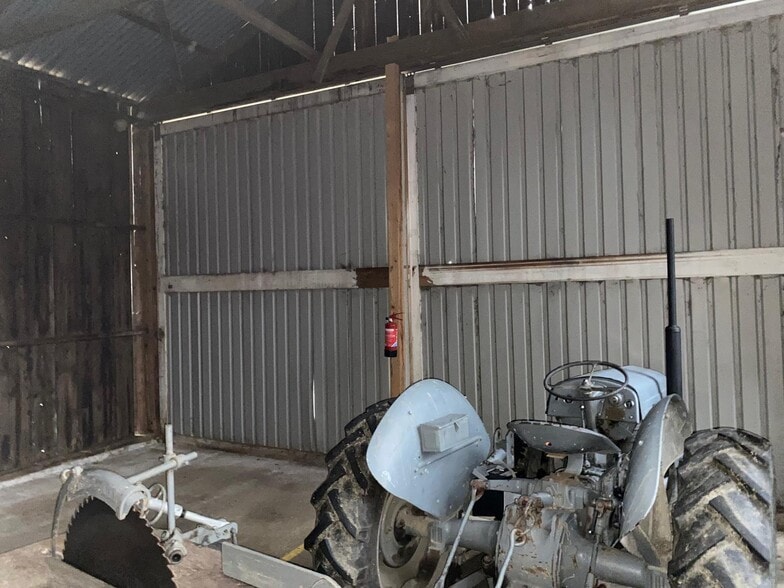The subjects comprise a detached storage building of concrete block construction timber clad externally and with pitched profile metal sheet roof over.
