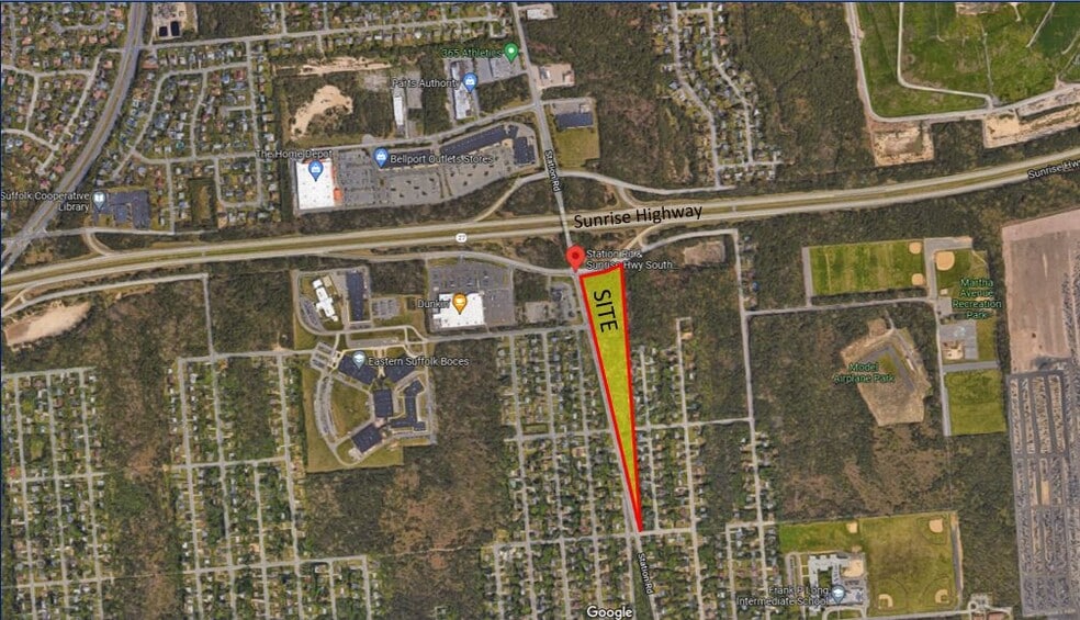 Perfect for Assisted Living or Adult Day Care Access to site from both Sunrise Highway South Service Road & Station Rd. Located 2.5 Miles from the Long Island Expressway Exit 65 78,569 DVC on Sunrise Highway & 11,995 on Station Rd. Adjacent to Bellport Outlets, Home Depot, BJ’s Wholesale Club