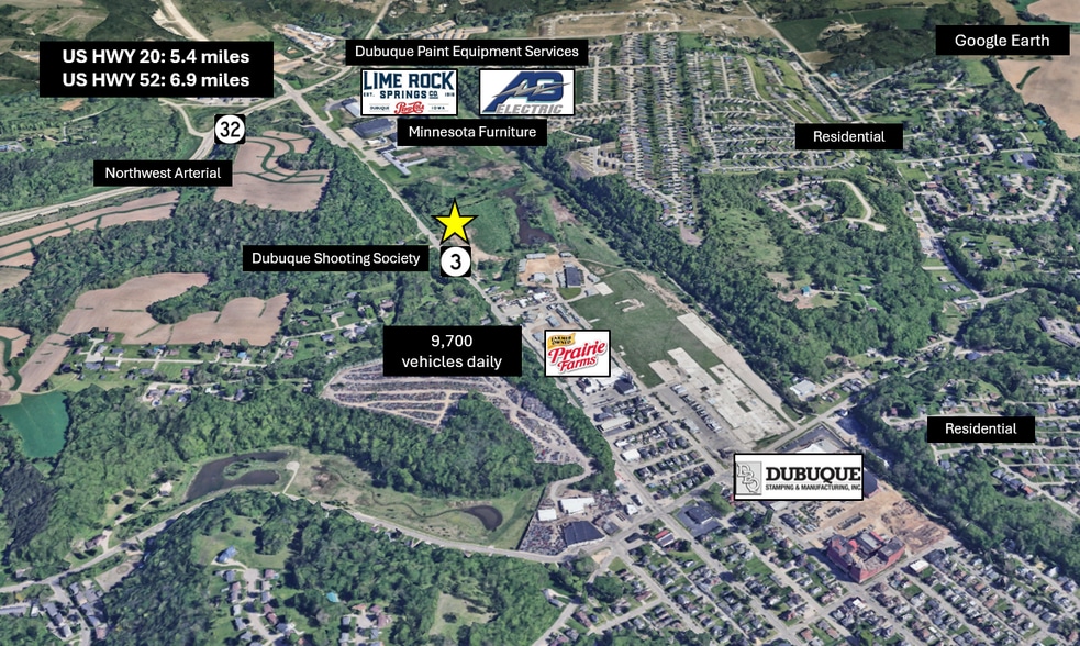Development Land Opportunity on Central Avenue/Highway 3. Take advantage of this exceptional high-visibility location with outstanding exposure directly on Central Avenue/Highway 3. Ideally situated less than one mile from the Northwest Arterial, this site sees high daily traffic with over 9,700 vehicles per day (2021 IA DOT), making it perfect for a wide range of commercial or industrial uses.