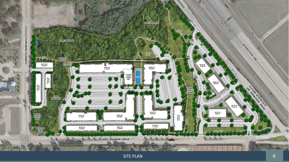• Planned cross-access and road connections at Lake Sharon Road and Dobbs Road to improve site accessibility.