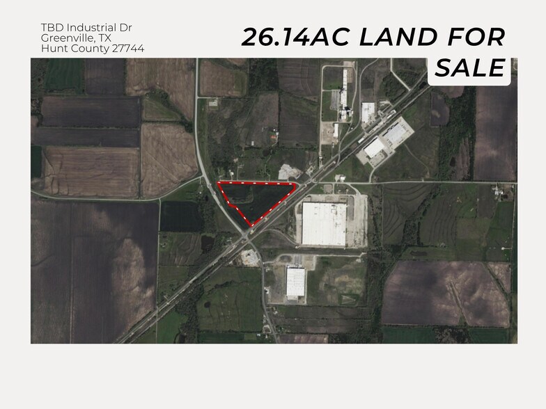 Discover this 26.14-acre industrial tract at TBD Industrial Dr, Greenville, TX — strategically located off Hwy 66 and John L. Horn Memorial Pkwy, with direct access to US-380 and I-30, and less than one hour from the DFW Metroplex.