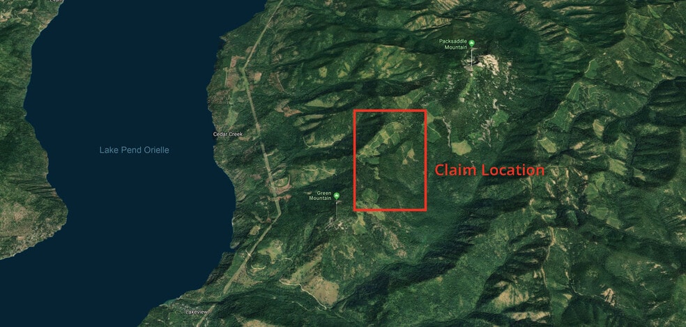 640 acre total claims area south of Lake Pend Oreille in northern Idaho on Green Mountain (representing the heart of the silica deposit). This 640 acre claims area is referred to in this presentation as the POSI Claims Area.