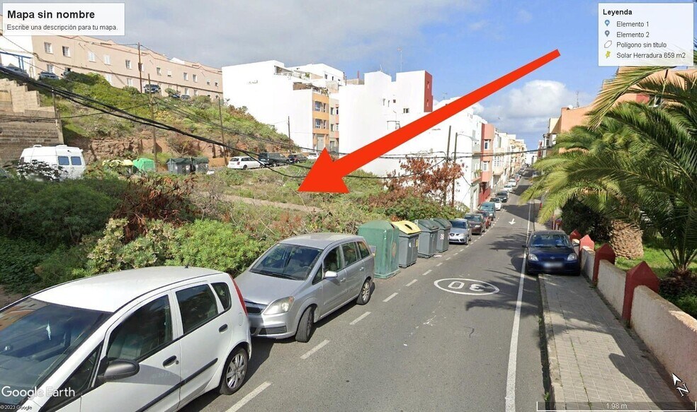 ATENCIÓN PROMOTORES! Se vende en La Herradura, barrio residencial muy cerca del centro de la ciudad de Telde terreno urbano consolidado de 659m2, en área urbana que cuenta con los servicios básicos; (luz, agua, saneamiento, alumbrado...). Estando apto para edificar directamente mediante licencia municipal, con ordenanza urbanística B1 (3 alturas), que no obstante, al existir un desnivel cabría la posibilidad de una cuarta planta para aparcamiento. Dependiendo del retranque que exija la ordenanza podría llegar a obtenerse un 3.5 de coeficiente de edificabilidad (a corroborar). Datos que habría que corroborar nuevamente para mayor exactitud. El barrio de La Herradura cuenta con buenas conexiones de transporte público, supermercado, instituto de secundaria, escuela infantil, centro de educación de adultos, campo de fútbol, bares, taller de coches, …. todo a un paso caminando sin necesidad de desplazarse en coche. Una buena opción como inversión para promotores y constructores en el momento actual de demanda de vivienda que hay en la isla de Gran Canaria. No dude en contactar para mayor información.