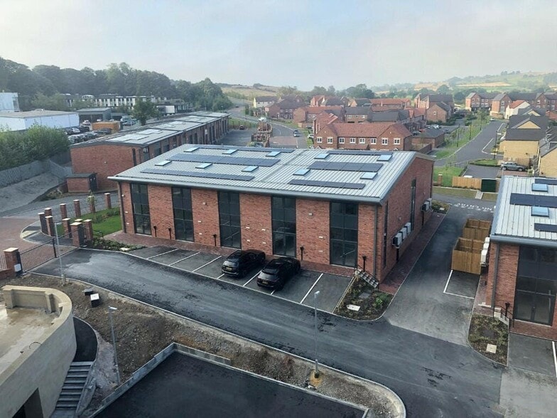 Units 9–24 Thirkill Park offer high-spec business space just south of Harrogate on the A61, with excellent access to Leeds, Ripon, and major transport links including the A1(M), Pannal Rail Halt, and Leeds Bradford Airport. Each unit features energy-efficient construction with PV panels, underfloor heating, LED lighting, mezzanine floors (40% of unit size), and modern amenities including FTTP, kitchenette, WC/shower, and ample parking with sustainable grasscrete surfacing.