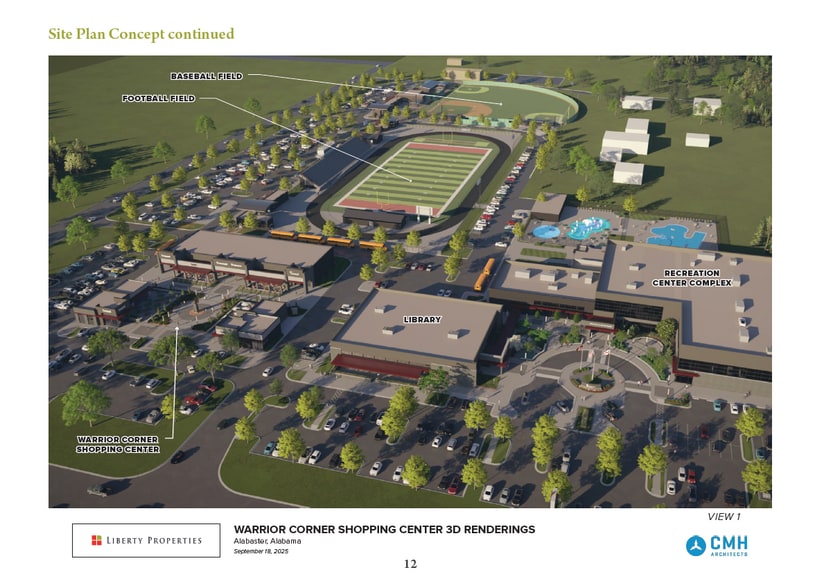 Retail & Restaurant Space Available – Prime New Development in Alabaster, AL Property Overview: Liberty Properties is proud to present a premier retail and restaurant development opportunity in the heart of Alabaster, Alabama. This 3.5± acre site is positioned at the high-traffic corner of Thompson Road and Highway 119, directly adjacent to Alabaster’s brand-new Recreation Center and Library that is proposed to open around the same time. The development will consist of approximately 20,000 square feet, thoughtfully designed across three separate buildings, ideal for a mix of retail, restaurant, and service-based tenants. Location Highlights: -Corner location with high visibility and strong traffic counts -Directly adjacent to the new Alabaster Recreation Center and Library -Walking distance to Larry Simmons Stadium and Jim “Peanut” Davenport Baseball Field -Surrounded by recent and ongoing municipal investment, including: -New Alabaster Police Department headquarters -Senior Center expansion -New Amphitheater -Major renovations to local sports facilities Development Features: -20,000 SF across 3 buildings -Flexible suite sizes for retail, restaurant, or service users -Outdoor seating and patio opportunities for restaurants -Ample on-site parking -Strong synergy with surrounding civic amenities and community traffic Why Alabaster? Alabaster is one of the fastest-growing cities in Shelby County and Greater Birmingham. The city’s strategic investment in community infrastructure and recreation creates a vibrant destination for families, sports visitors, and daily municipal traffic—all within walking distance of this development.