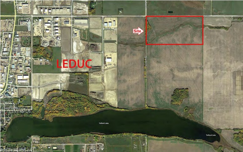 Located in Leduc, Alberta, this 80-acre site is part of the East Telford Lake Area Structure Plan. It is planning-approved and positioned just 8 minutes from Edmonton International Airport. The property is ideal for logistics and warehouse operations, with favorable tax rates and strong municipal support.