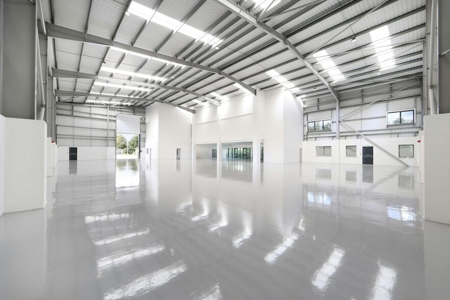 Comprises a self-contained detached warehouse of steel portal frame construction with external profile steel cladding under a single pitch profile steel roof incorporating roof lights. The unit benefits from a full height shutter door, 8m eaves height with 2 storey offices, male and female WCs and kitchen area and lighting throughout