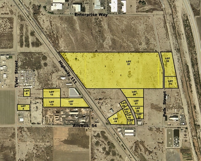 Lot 6 (APN 763-141-010) is a ±2.51-acre finished industrial parcel located along Tyler Street in the City of Coachella. The site is fully improved with utilities available, offering a true shovel-ready opportunity for immediate development. The property is situated within the City’s Urban Employment (U-E) Zone, which allows for a variety of light industrial, commercial, and office uses (subject to City approval), providing flexibility for a wide range of end users and development strategies. The parcel features a flat, usable configuration with excellent frontage and accessibility, making it well-suited for industrial buildings, contractor yards, storage uses, or flex space development. Its strategic location provides convenient access to Highway 86 and Interstate 10, allowing for efficient connectivity throughout the Coachella Valley and beyond. Additionally, the property lies within a designated Opportunity Zone, offering potential tax benefits for qualified investors. Surrounded by ongoing industrial and commercial growth, Lot 6 represents a rare opportunity to acquire a build-ready site in a market experiencing increasing demand and limited supply of improved industrial land.