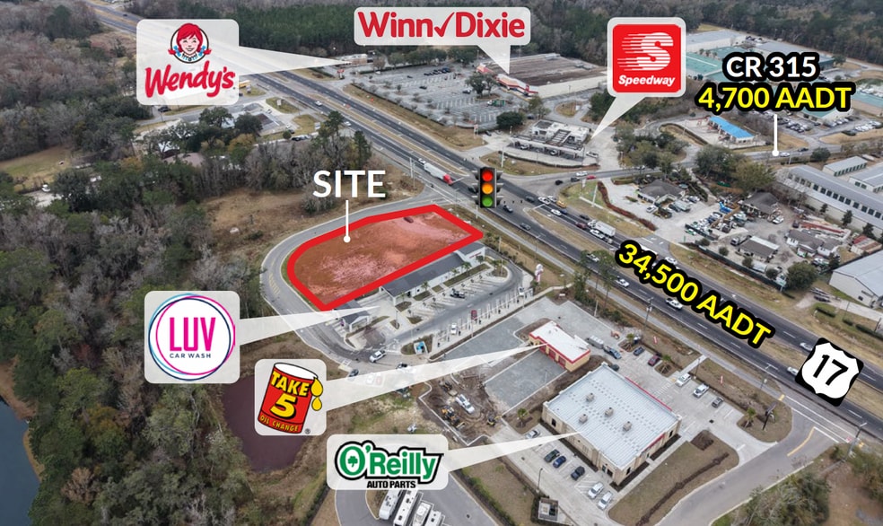 PROPERTY HIGHLIGHTS • 0.81 acre commercial parcel at a signalized intersection • Ground Lease or Build-to-Suit • Access to a new signalized intersection • Off-site retention • Zoned BB-2 • Located two miles south of Fleming Island and two miles north of Green Cove Springs • Green Cove Springs is the County seat and the location of the Clay County Courthouse • Traffic Counts: US 17: 32,000 AADT & CR 315: 4,400 AADT • CR 315 dead ends into this site and will connect US 17 with the First Coast Expressway