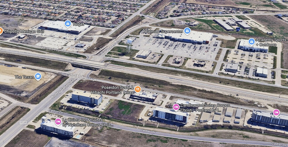 The property consists of approximately 1.52 acres of land located along US Highway 181 in Portland, Texas. It is zoned for General Commercial use and has access from both US-181 and Buddy Ganem Drive. The site is served by water, sewer, electric, and gas utilities and is situated outside the flood zone. The surrounding area includes a mix of commercial, residential, and hospitality developments. The property is located within the Coastal Bend region, approximately 30 minutes from Corpus Christi International Airport, and benefits from proximity to major transportation corridors and regional amenities.