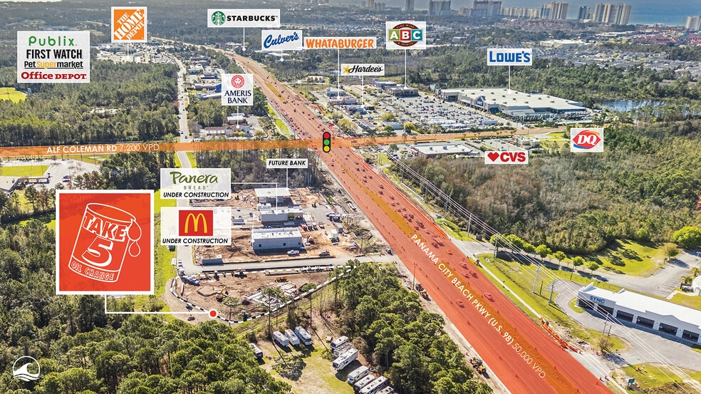 Take 5 Oil Change - Panama City Beach, FL US-98 & N Alf Coleman Rd 1,430 SF Retail Building Panama City Beach, FL 32407 $2,242,365 CAD ($1,568.09 CAD/SF) 5.25% Cap Rate