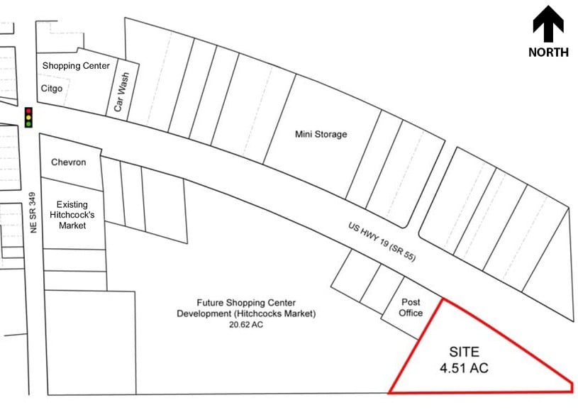 Located just south of the post office, with 700+ feet of frontage directly on US19. Zoning is commercial intensive.