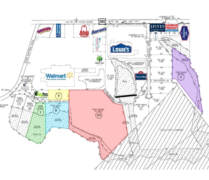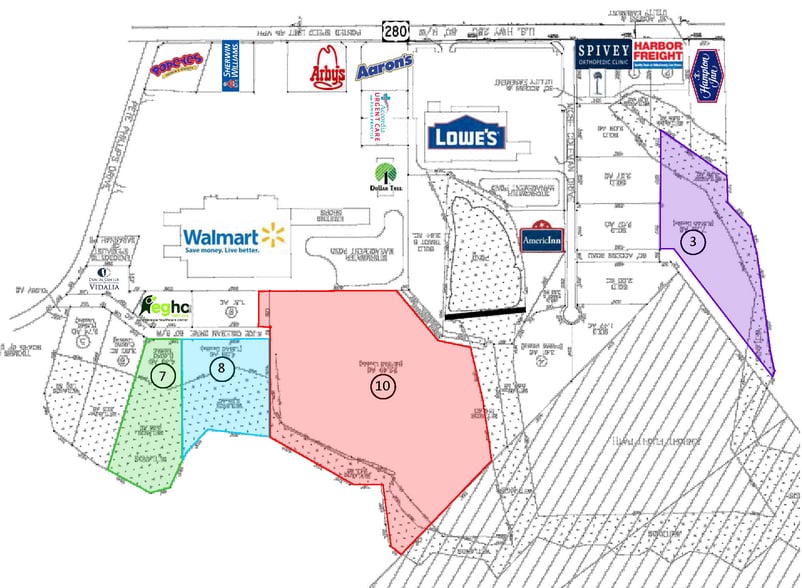 Each tract features close proximity to major national retailers, creating a built-in customer draw and steady traffic flow. Surrounding infrastructure supports development efficiencies, including direct access to US 280, a primary east-west arterial with traffic counts exceeding 19,500 vehicles per day. The area’s demographic strength further enhances long-term value, with projected 2025 populations of more than 27,000 within 10 miles and nearly 60,000 within 20 miles, accompanied by competitive median household incomes.