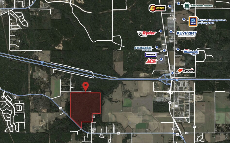 354 ± acres of raw land on Highway 90 near Loxley, AL. Site is in close proximity to I-10 and Highway 59 intersection, allowing easy access to I-10. Site has direct access to Highway 90. All utilities are on site or nearby. Site is zoned Baldwin County RA-Rural Agriculture. The property is located in Baldwin County, which has a diverse economy and is a growing area with opportunities for development.