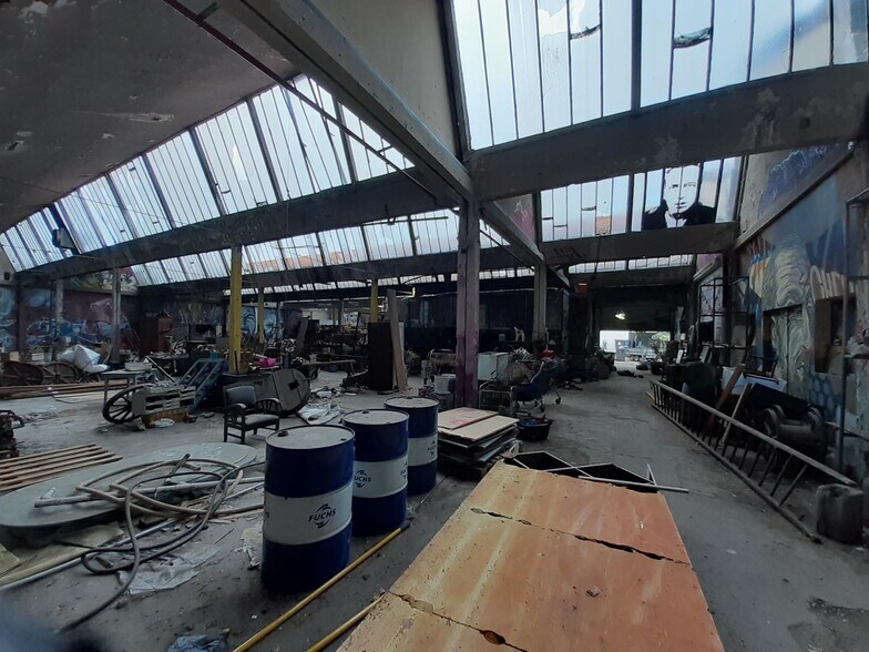 Situé à proximité du tramway Local très clair avec un toit composé de sheds Hauteur sous poutrelles env. 4 M Trame des piliers 6 X 6,5 M Cour Travaux à prévoir Exclusivité SIREN 400 997 599