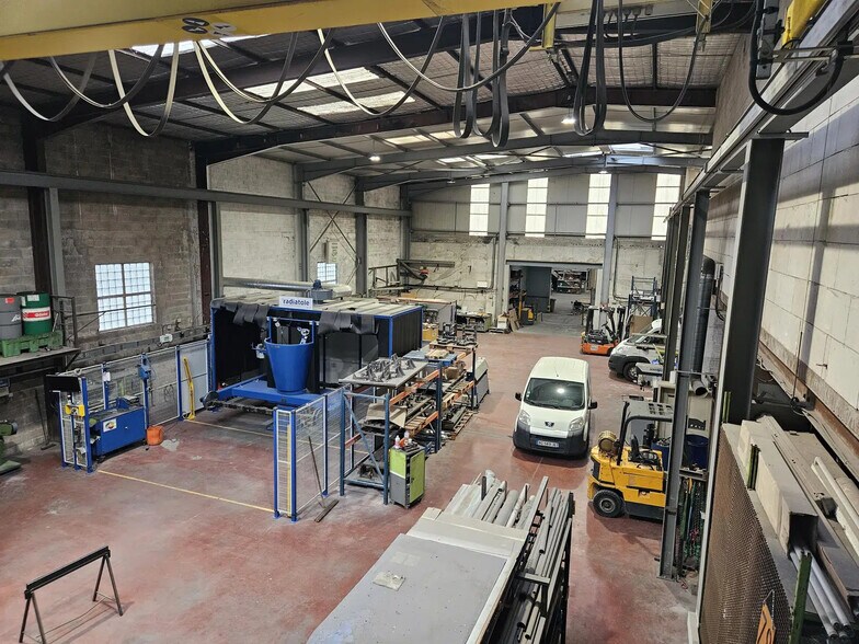 We are offering a warehouse with an 8-meter ceiling height, two sectional doors, and 150 sqm of office space on the upper floor.