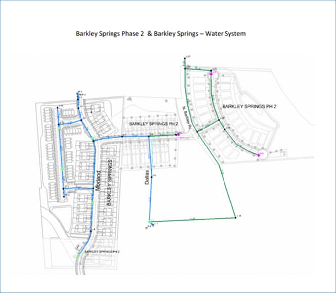 The site is located adjacent to Third Creek Elementary School, where both water and sewer utilities are available immediately adjacent to the subject parcel. An 8-inch waterline currently serves the school via the access road, and additional water infrastructure is being extended from the north through the nearby Barkley Springs subdivision. A gravity sewer line is also located to the southeast of the property.