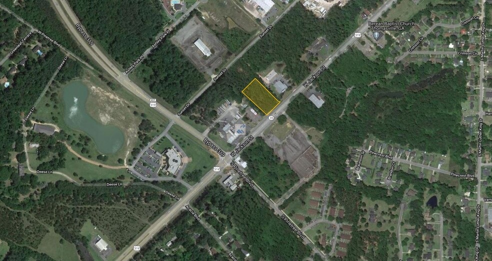Located on busy West Jackson St., this 1.46 (+/-) acre property is among several businesses including BP Gas Station, Circle K, Marathon Gas, Rumbles Document Solutions and Dixon Pest Services. In addition, this property is in close proximity to Ashley Park, a luxury apartment complex including over 80 homes. Average vehicle count per day on W. Jackson St. at Pinetree Blvd. is over 10,500. Located near the corner of S. Pinetree Blvd (HWY 319) and W. Jackson St. in Thomasville, Ga.
