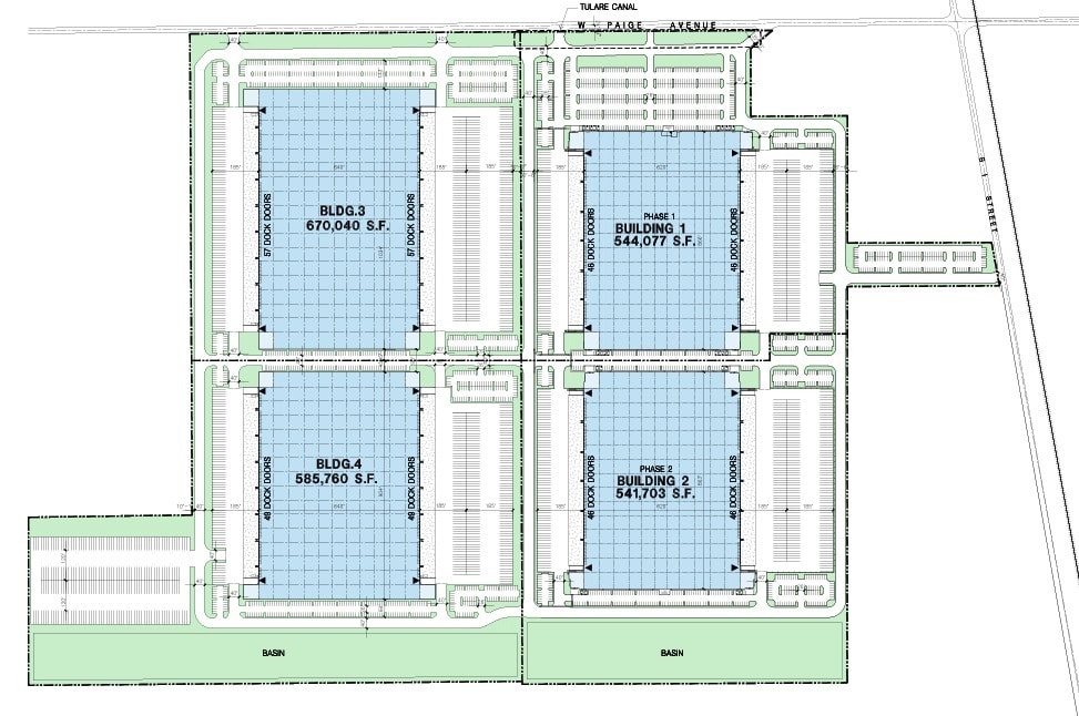 Phase I of construction is complete and is now ready for occupancy at 99 Central Logistics Center at 199 E Paige Avenue in Tulare, California, a 2,341,580-square-foot master planned business park. Offering approximately 544,077 square feet, expandable up to 1.1 million square feet, Building 1 has room for companies to grow and expand. Move into this new state-of-the-art industrial distribution center and unlock new tools to elevate facility operations. Phase One of this project includes ideal industrial specifications of 3,450 square feet of office, 36 feet of clear height, 50-foot by 50-foot column spacing, ESFR sprinklers, and 266 trailer spaces. Loading capabilities for this distribution center comprise 92 dock doors, four grade-level doors, a 185-foot truck court, and 266 trailer spaces. 99 Central Logistics Center's Tulare industrial location offers excellent connectivity and a strong business environment. The property is just 1.1 miles from State Route 99, providing quick and efficient access for transportation and distribution. The regional infrastructure supports freight management needs, with quick access to the Port of LA/Long Beach and Port of Oakland, Union Pacific Intermodal in Manteca, approximately 170 miles away. Well-connected, this Central Valley area is home to a concentration of major corporate neighbors, including Nestlé, Land O’Lakes, and Kraft in Tulare, along with Ace Hardware, International Paper, California Dairies, and Perfection Pet Foods in nearby Visalia. UPS and OnTrac also maintain significant facilities in Visalia, allowing for convenient ground package delivery with central markets reachable in under two transit days. The surrounding demographics add to the location’s strength. Within a 45-mile radius, there are more than 1.1 million residents, including over 406,000 online shoppers in the past year, 215,000 of whom spent more than $500 on e-commerce orders. This combination of accessibility, strong corporate presence, and robust consumer demand positions the 99 Central Logistics Center for industrial, distribution, and logistics users.