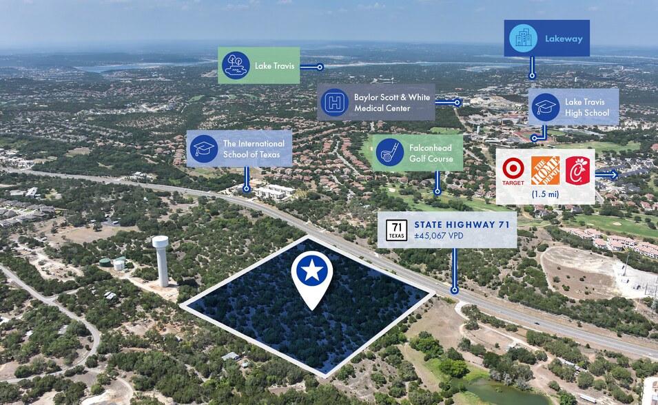 Northmarq is pleased to present Bee Cave Mixed-Use Development Site, a ±18.95-acre mixed-use opportunity strategically positioned directly along the Highway 71 corridor in Bee Cave, one of the most affluent and desirable communities within the greater Austin MSA. Located just 17 miles west of downtown Austin, the site benefits from exceptional employment accessibility, visibility, and connection within a premier Hill Country destination known for upscale shopping, dining, outdoor recreation, and top-performing schools within Lake Travis Independent School District. Zoned MU-N (Neighborhood Mixed-Use), the property accommodates neighborhood-scale commercial uses and vertically integrated residential product, with development standards promoting commercial growth, sustainable design, and high-quality placemaking. Supported by long-term municipal commitment and a strong growth trajectory in an already thriving community, the Bee Cave Mixed-Use Development Site presents a compelling opportunity for retail, residential, or integrated mixed-use development in one of Central Texas’ most supply-constrained and high-performing submarkets.