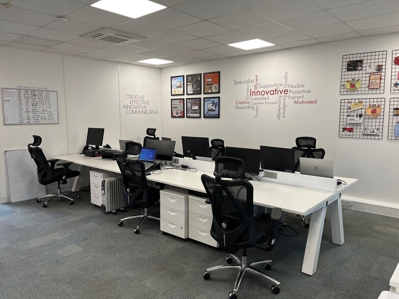 Self-contained office premises in business park location. Courtyard entrance and rear loading door.
