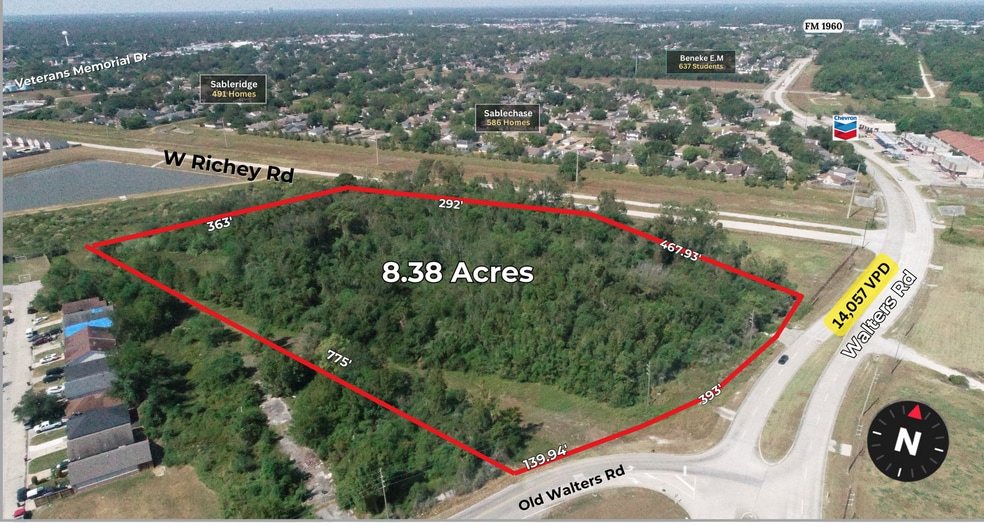 Property: 8.38 Acres ±532' of frontage on Walters & Old Walters Rd. 292' of frontage on West Richey Rd Prime Location for Development: The property is positioned near major roads such as W Richey Rd and Old Walters Rd, providing excellent accessibility for various types of commercial or mixed-use developments. This area is a hub for residential neighborhoods and commercial activities, making it attractive to developers looking to capitalize on both. 17 schools/education within a 3-mile radius Growing Residential and Commercial Zones: The land is surrounded by established residential areas and is located near growing commercial sectors, which provides potential opportunities for retail centers, mixed-use projects, or service-based businesses catering to the local community. Potential for Multiple Uses: Given its size and location in a developing area, the property offers versatile development options. Whether for retail, multifamily, or office park use, the land has the space and access needed for large-scale projects. Flexible Zoning Potential: The property offers a range of possibilities, from retail to commercial mix used to flex space development and Multifamily, making it a versatile investment for various business needs.