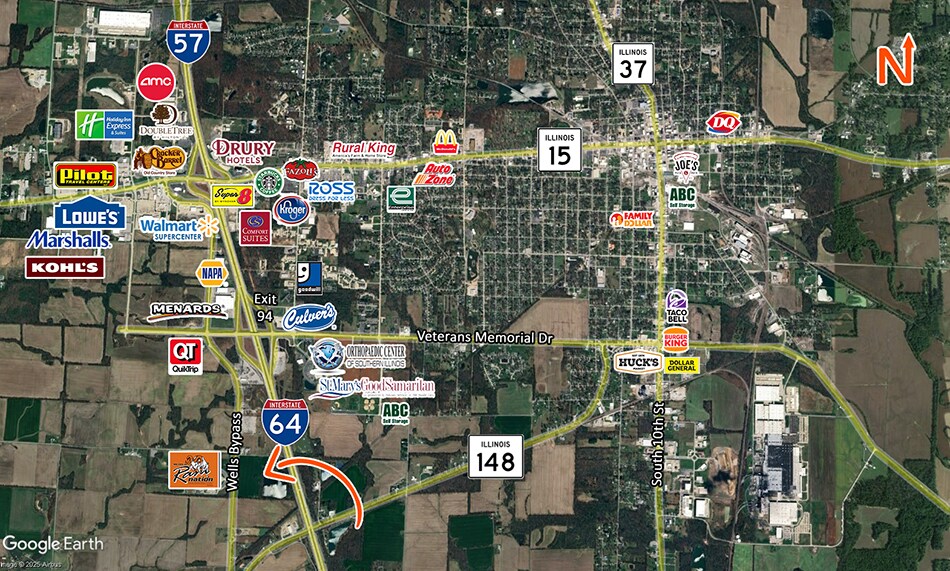 48 Acre Development Site - WILL DIVIDE. Frontage on Well Bypass and I-57.