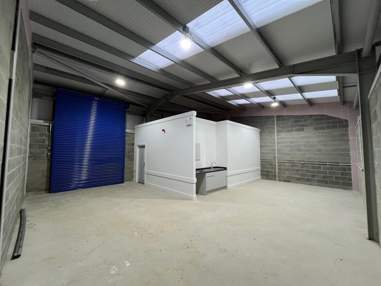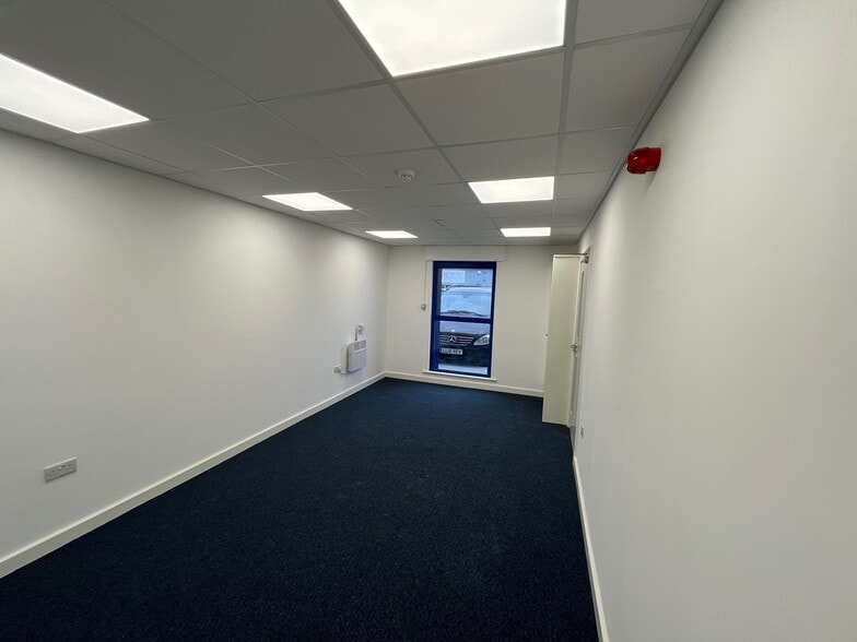 The units comprise of a terrace of industrial units constructed of steel portal frame with brick and block infil walls with metal sheet cladding above. There is a pitched profile clad roof over incorporating translucent roof lights. The unit have eaves heights ranging from 3.5m to 4m to underside of haunch. Access is via one electrically operated roller shutter doors 4m (H) x 2.82m (W). Each unit benefits from a small office block with entrance lobby/WC/security shutters and an office with electric heaters, carpets, electrical sockets and suspended ceilings. The workshop area benefits from LED lighting, full fire alarm system, tea point and electrical sockets. To the front of the units there is a secure shared yard with palisade fencing and CCTV.