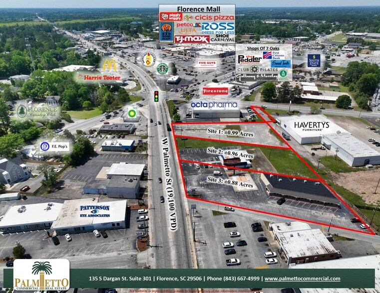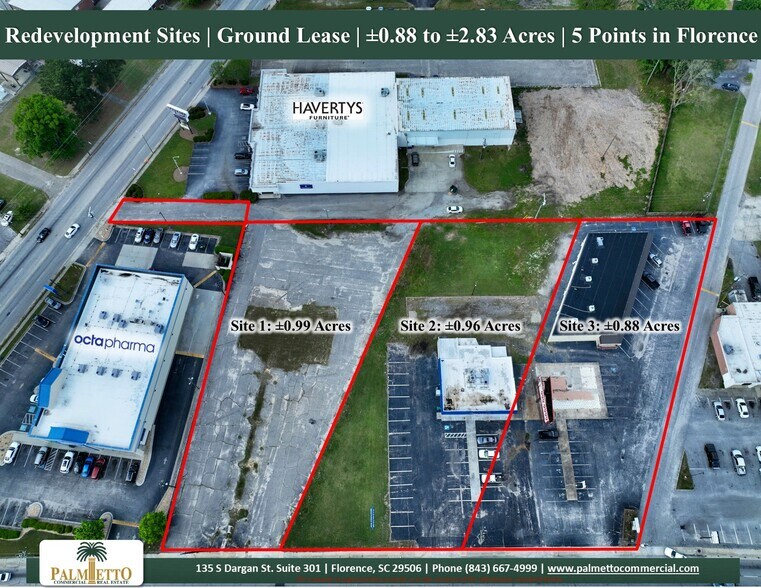 Situated in the bustling 5 Points area of Florence, SC, these three redevelopment sites offer great visibility and direct frontage along high-traffic West Palmetto Street.? Ranging from ±0.88 to ±2.83 acres, each site is fully equipped with access to all utilities.? The surrounding area is home to a diverse mix of national retailers, restaurants, and service providers, making it ideal for a wide range of commercial uses.? With strong traffic counts and consistent consumer activity, these sites offer a strategic opportunity for new development.?