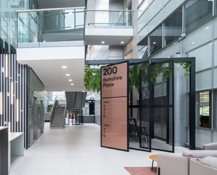 200 Berkshire Place offers high quality Grade A office space which can accommodate requirements from 4,500 sq ft - 63,700 sq ft. The building has excellent car parking and several key transport connections nearby. There is an onsite café as well as several local amenities in the local vicinity.200 Berkshire Place is located adjacent to the A329M and Junction 10 of the M4. Access to the M4 can be achieved within 2 minutes drive of the building. For those who commute via train, Winnersh Triangle Train Station is within a 2 minute walk of the building. Local amenities include Hilton Hotels, Gather & Gather, WH Smith, Move HQ and Showcase Cinema de Lux.
