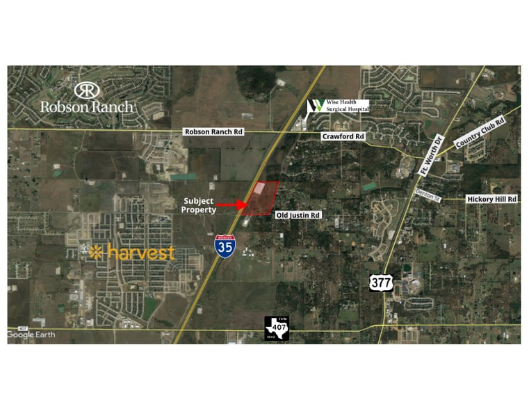 Approximately 49.8025 acres on I35W in Argyle, TX. Property has 1 hard corner, at Old Justin Road and C.Taylor Road. This is a high-traffic area with tons of growth and development. Currently zoned Community Services. Argyle water is available.